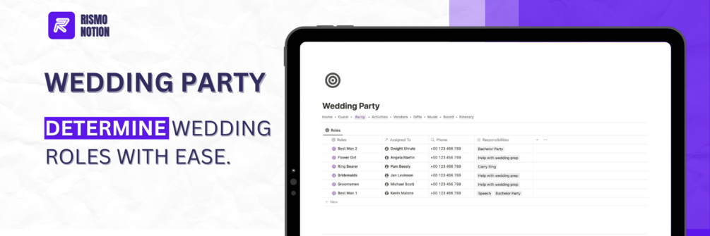 - Wedding Party: Assign roles to your bridesmaids, groomsmen, ring bearers, and more, making sure everyone knows their responsibilities.