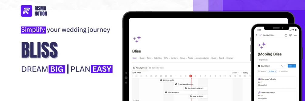 Introducing Bliss! wedding planner Notion template – your perfect planning companion for the Big Day!