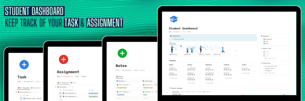 With this template, you can easily keep track of your classes, assignments, tasks, and notes all in one place.